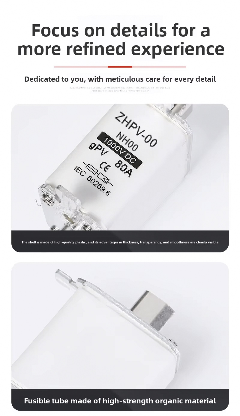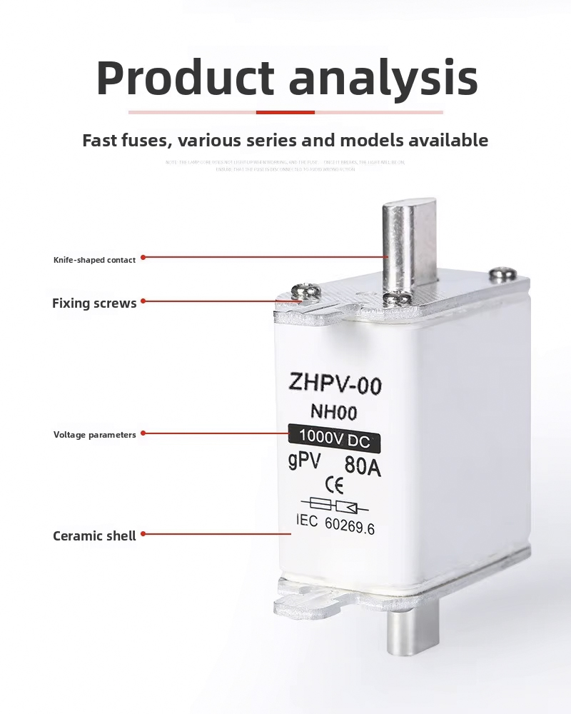 Tillverkad av hållbar plast, NH00-1000V IEC lågspänning fotovoltaisk knivsäkring plast 80A 6ka brytkapacitet erbjuder utmärkt isolering och värmebeständighet, vilket säkerställer stabil prestanda i krävande miljöer. I enlighet med IEC-standarder garanterar denna säkring säkerhet och uppfyller kraven för moderna projekt för förnybar energi. Den knivliknande designen möjliggör enkel installation och utbyte, vilket minskar underhållstiden och säkerställer kontinuerlig systemdrift.Välj NH00-1000V IEC Lågspänningsfotovoltaisk knivsäkring Plast 80A 6ka Brytkapacitet för din solenergi eller industriella applikationer för att dra nytta av exceptionellt skydd, hållbarhet och överensstämmelse med internationella säkerhetsstandarder.