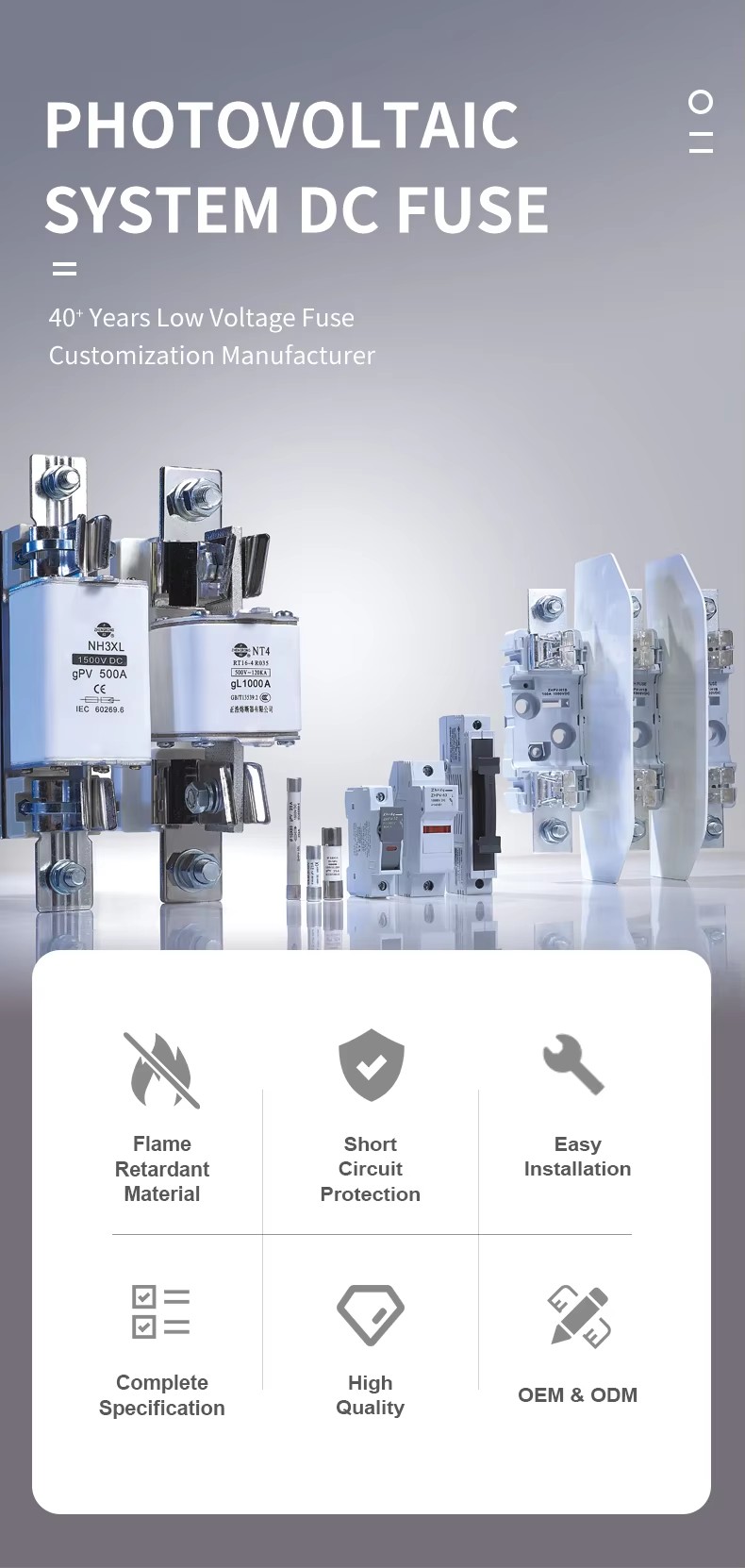 För förfrågningar om fotovoltaisk DC -säkring, cylindrisk säkring, fyrkantig bult BS88 säkring eller prislista, vänligen lämna din e -post till oss så kommer vi att ha kontakt inom 24 timmar.