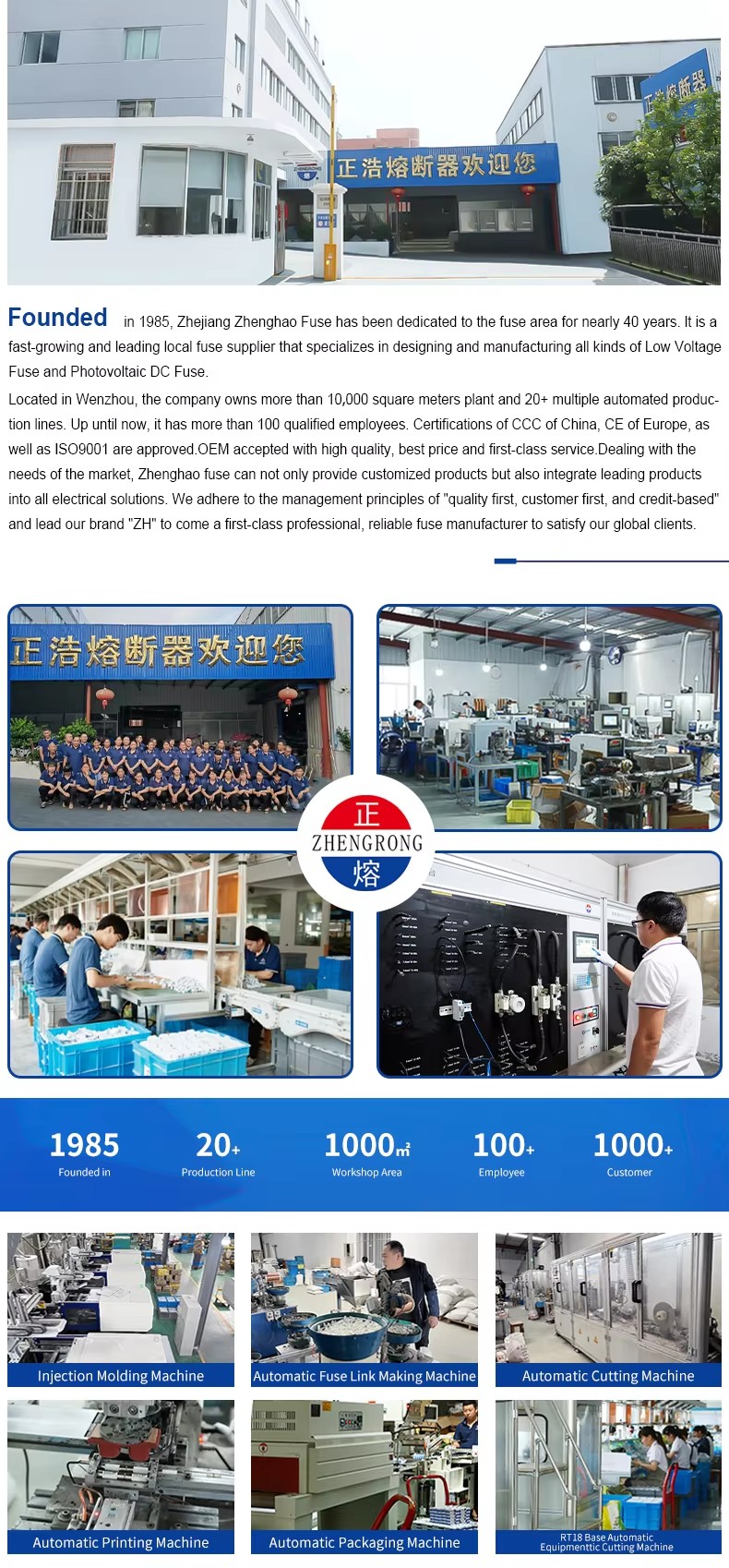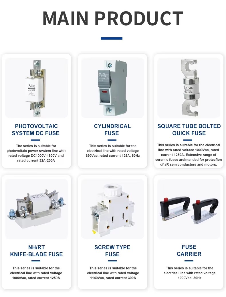 De strukturella egenskaperna hos ZHPV-125 1000V DC-säkringsbas och säkringslänkar 22 × 58 mm cylindrisk keramisk säkringsbotten i det fotovoltaiska systemet är följande. Denna serie säkringar består av en säkringslänk och en säkringshållare. Den variabla tvärsnitts säkringskroppen gjord av rent kopparplåt (eller koppartråd, silvertråd, silverplåt) är förseglad i ett säkringsrör tillverkat av höghållfast keramik eller epoxiglasduk, fylld med kemiskt behandlad kvartsand som ett bågsläckningsmedium. De två sidorna av säkringskärnan är pålitligt anslutna till ändplattan genom fläcksvetsning, och bildar en cylindrisk lockformad struktur. ZHPV-125 1000V DC-säkringsbasen är tillverkad av harts eller plastskal pressad med elektrisk chock, inklusive ett säkringselement, som är anslutet genom att nitas som ett stöd för lämplig säkringskomponent för storlek. Denna serie säkringar har fördelarna med liten volym, enkel installation, säker användning och vackert utseende.